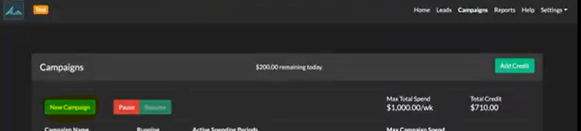 1. On the campaigns tab, click New Campaign.